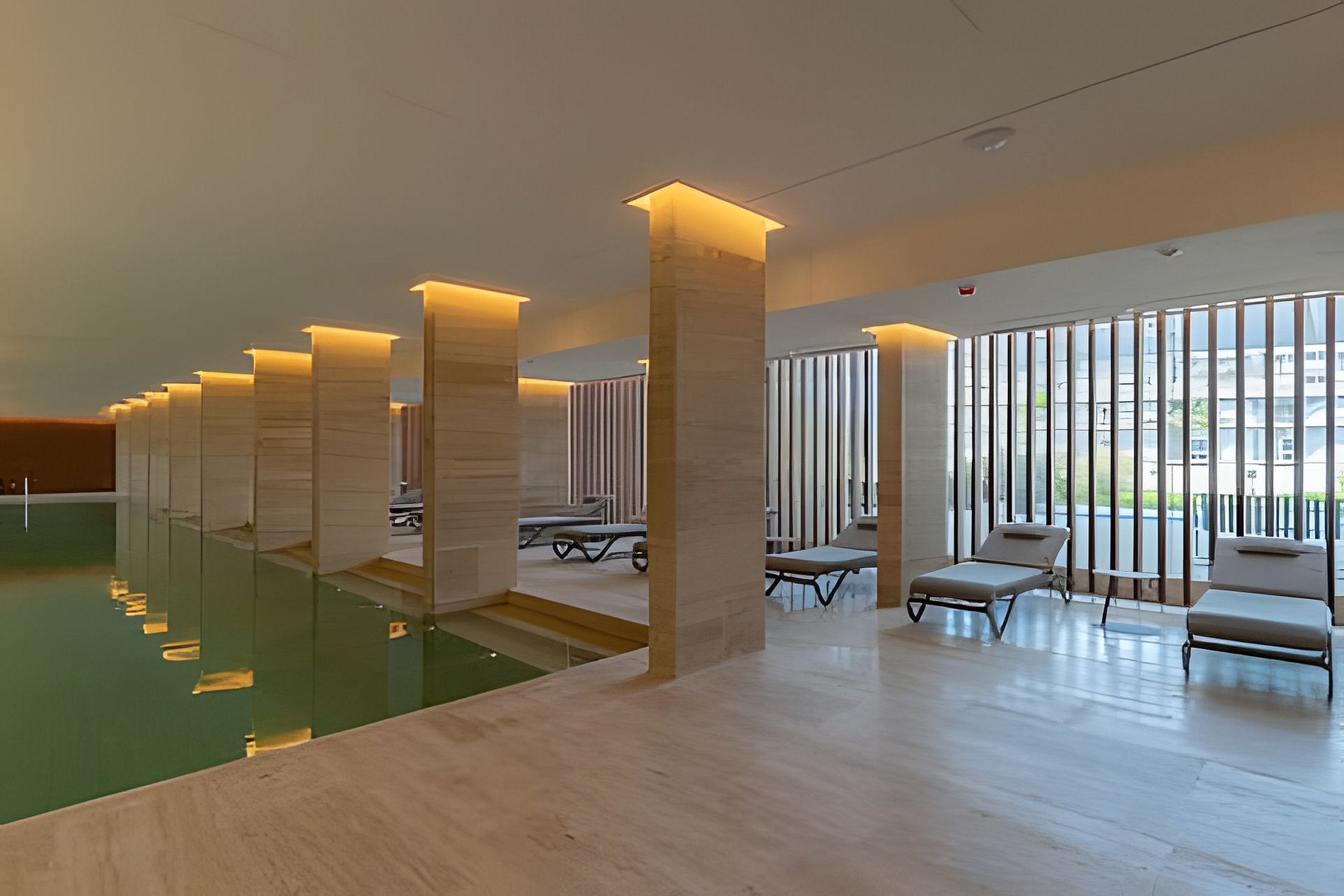 The pools can be used from 8:00 AM to 9:00 PM. The indoor swimming pool is open all year round, while the outdoor pool is only open from October to March. Children under 18 years old cannot stay without adult supervision in the pool or public areas. The building is very strict with this rule, and fines may apply. Gym hours: from 7:00 AM to 9:00 PM. Only adults over 18 years old are allowed inside the gym.