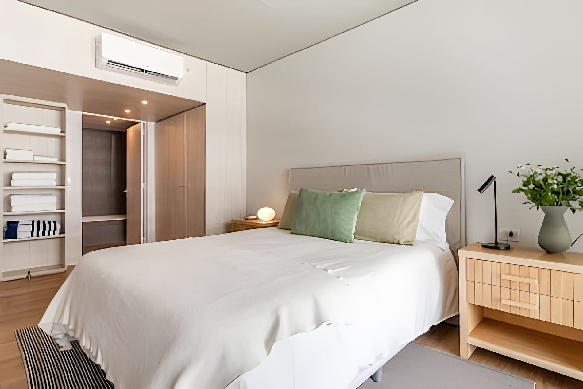 It has everything you need for an excellent stay: a living room with a fully equipped kitchen, a Nespresso coffee maker, two air conditioning units, a sunny balcony overlooking the pool, WiFi, and Smart TVs. The apartment has 2 bathrooms: toilet + a full bathroom. The room is very spacious. It is equipped with a queen-size bed (160 cm) with top-notch cotton bed linen and has black-out roller blinds with remote control automation, to ensure total darkness during sleep hours.