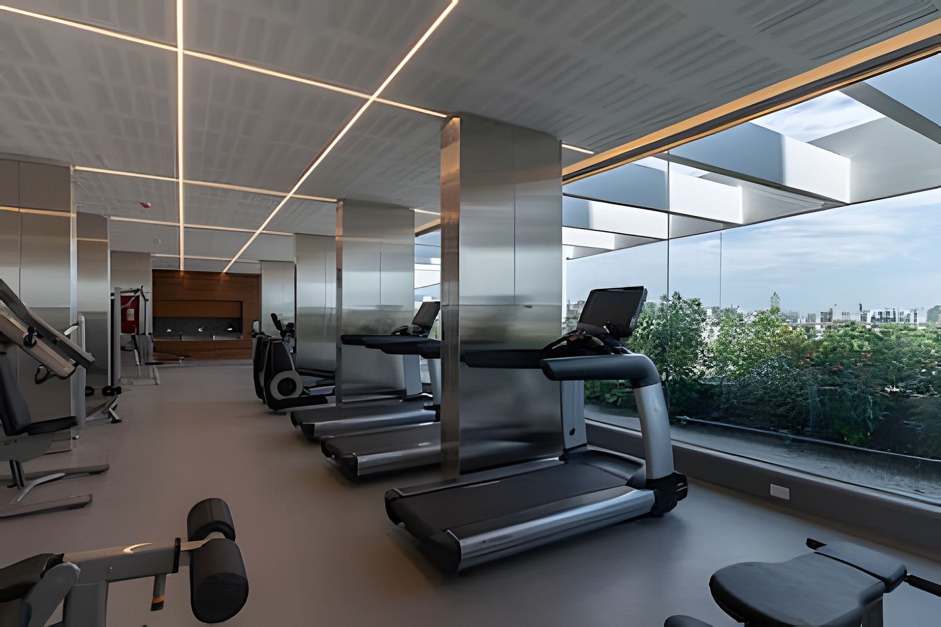 The pools can be used from 8:00 AM to 9:00 PM. The indoor swimming pool is open all year round, while the outdoor pool is only open from October to March. Children under 18 years old cannot stay without adult supervision in the pool or public areas. The building is very strict with this rule, and fines may apply. Gym hours: from 7:00 AM to 9:00 PM. Only adults over 18 years old are allowed inside the gym.