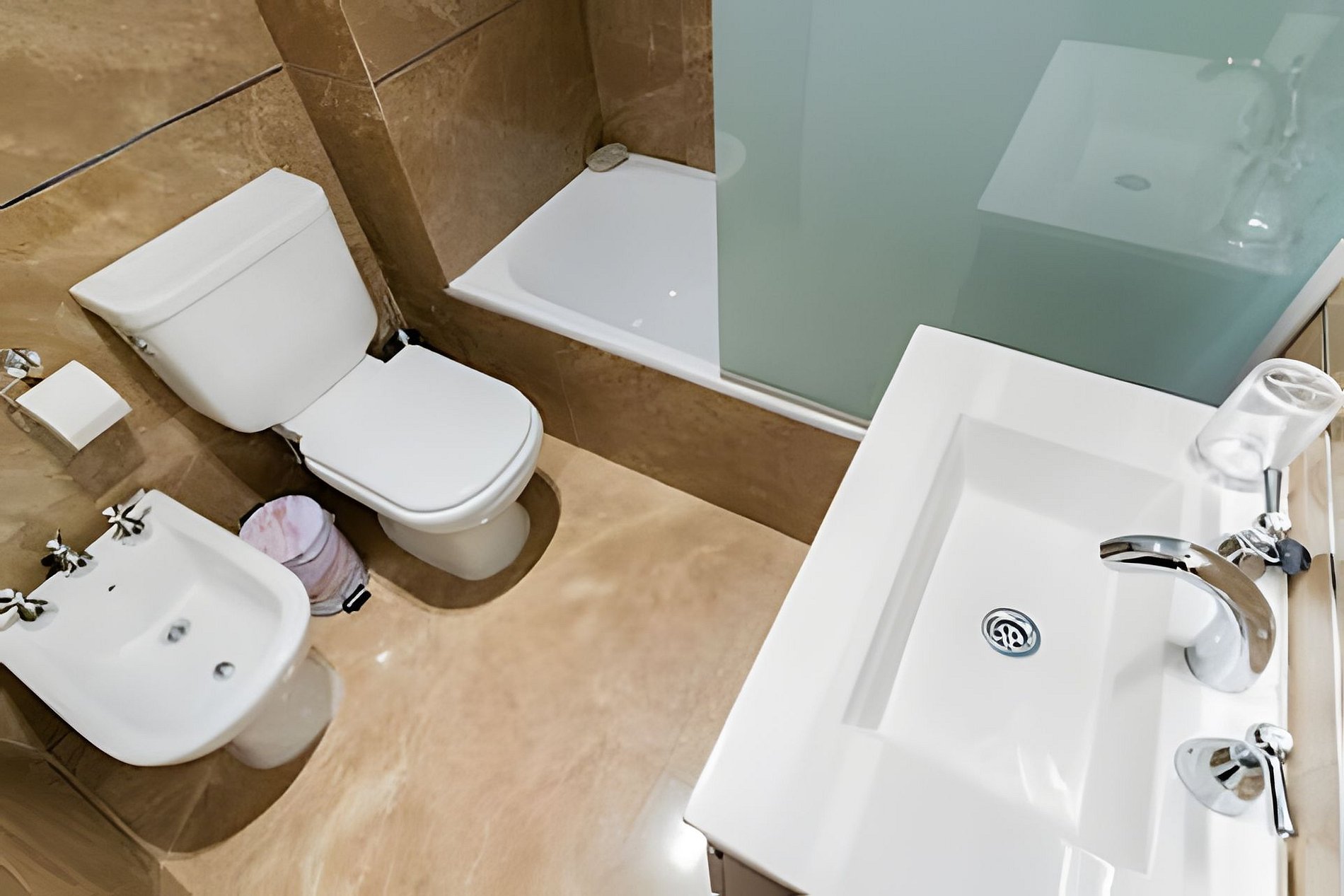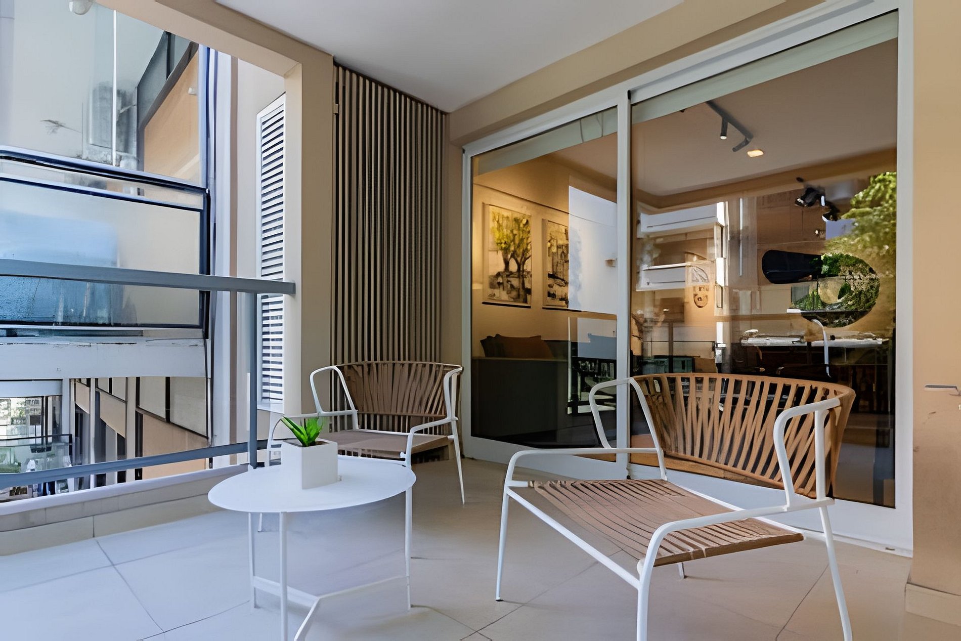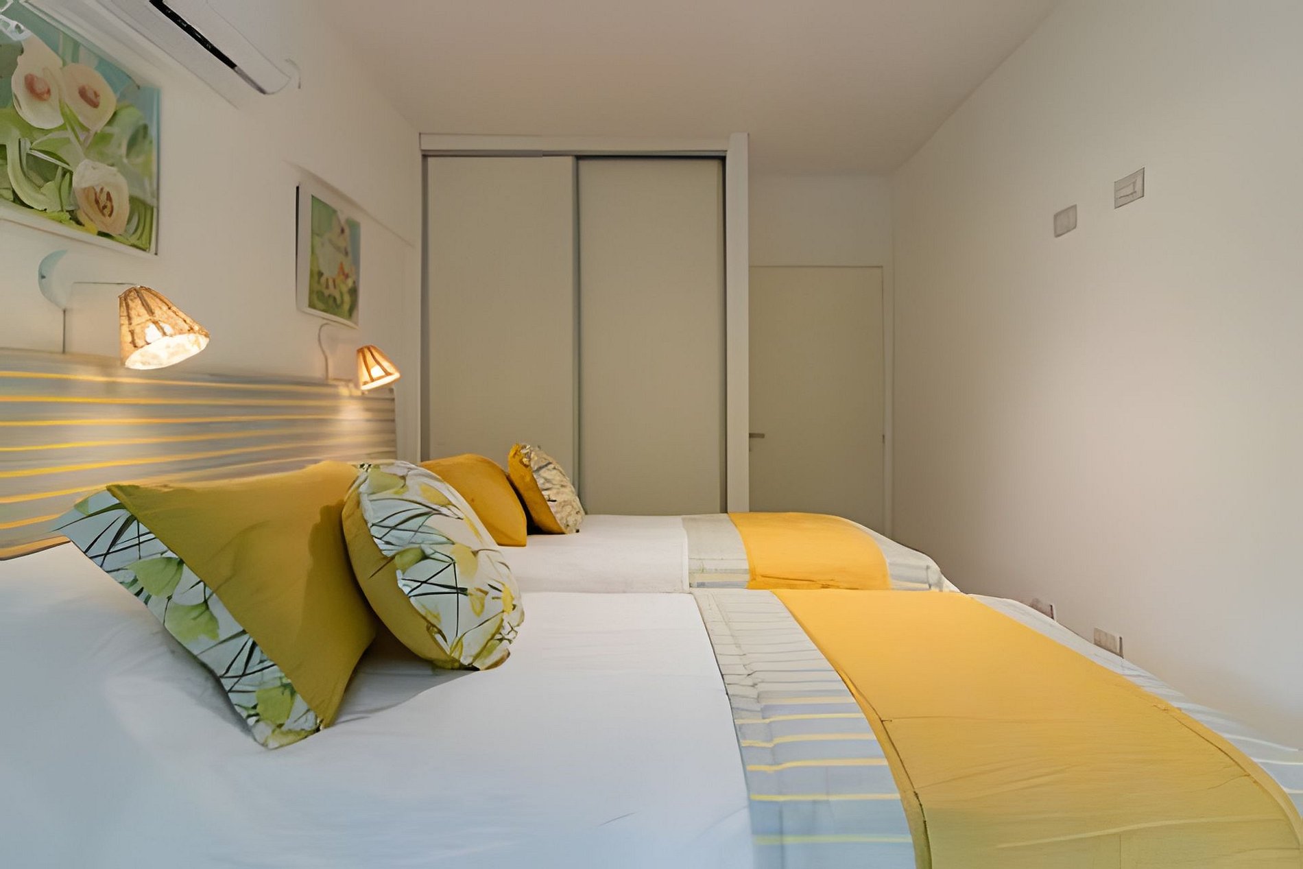 It has everything you need for an excellent stay: two cozy bedrooms, two full bathrooms, a spacious living room with sofa, dining table and TV, a fully equipped kitchen, air conditioning in both bedrooms and living room area, and a large balcony overlooking the city.