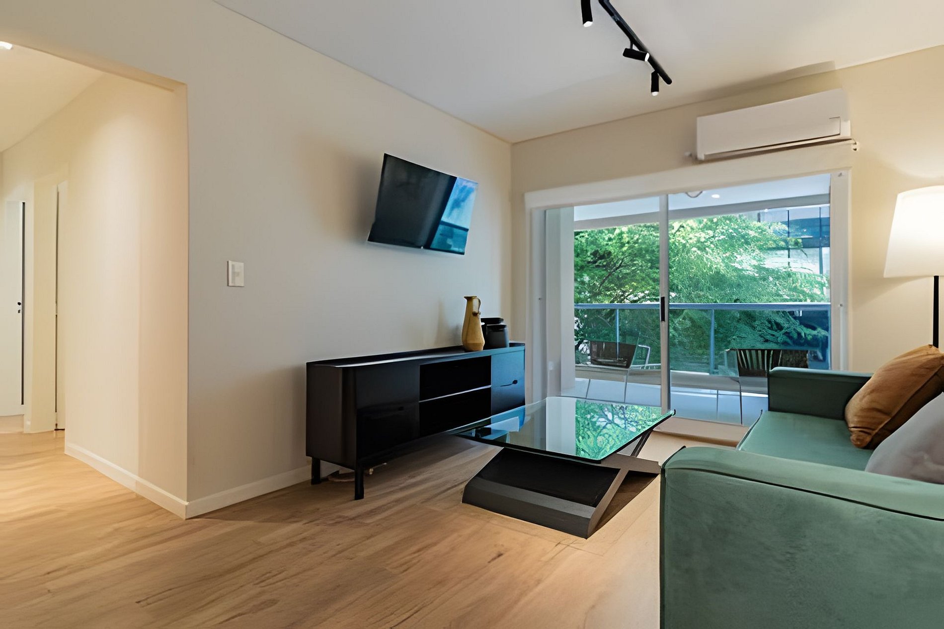 Spacious 2-bedroom, 2-bathroom apartment located in a modern residential building in the most exclusive area of Palermo. This unit is fully equipped to make you feel at home in the city's best neighborhood. It is close to Buenos Aires' best restaurants, cafes, and parks.