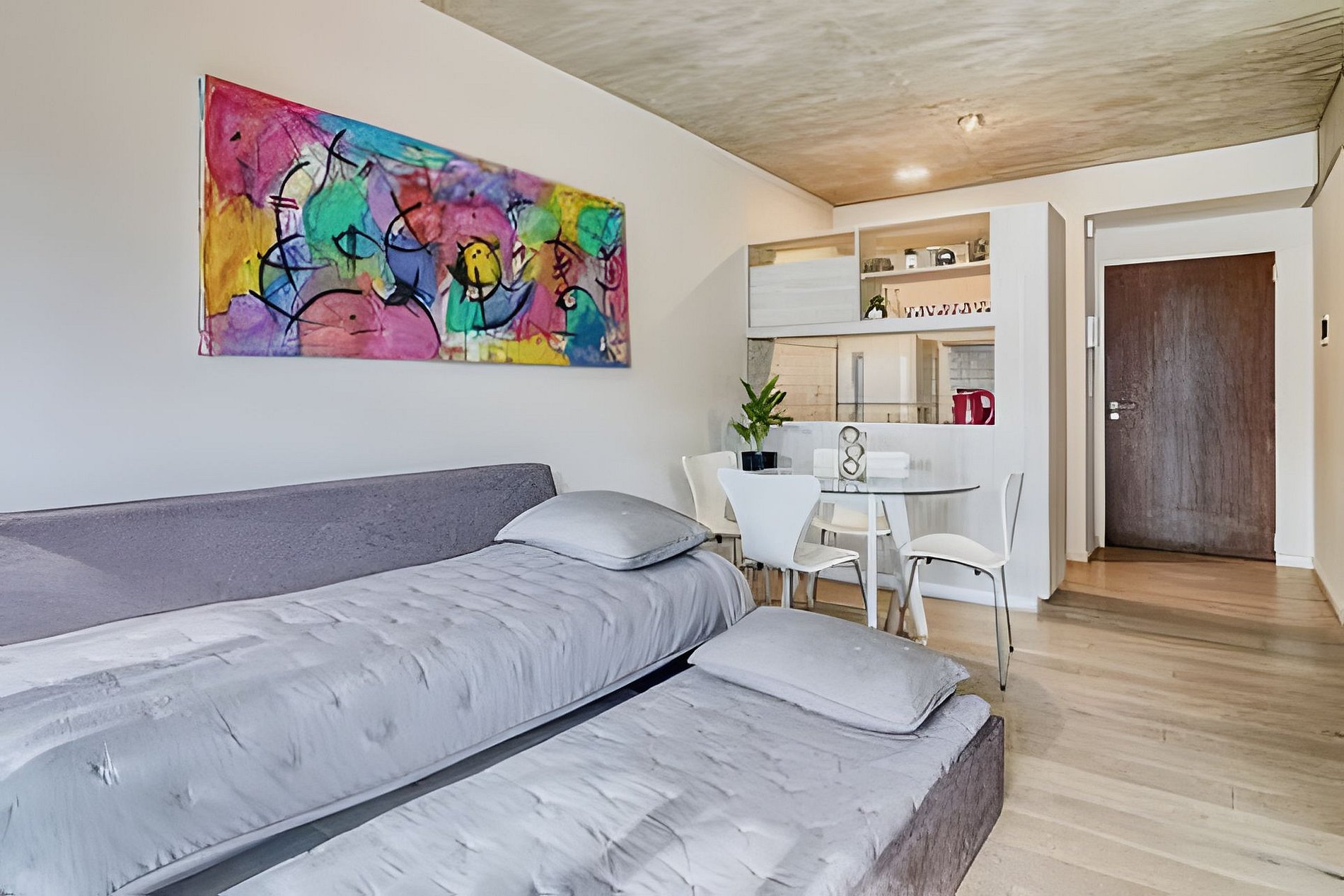 Cuenta con todo lo necesario para una excelente estadía: living comedor con cocina completamente equipada, aire acondicionado, cama amplia (180 cm), con opción de poder armarse dos Camas twin separadas. Piso alto, cortinas Black Out, Wifi y Smart TV movible. Cortina divisora de ambientes para mayor privacidad si el apartamento se utiliza para 4 personas.