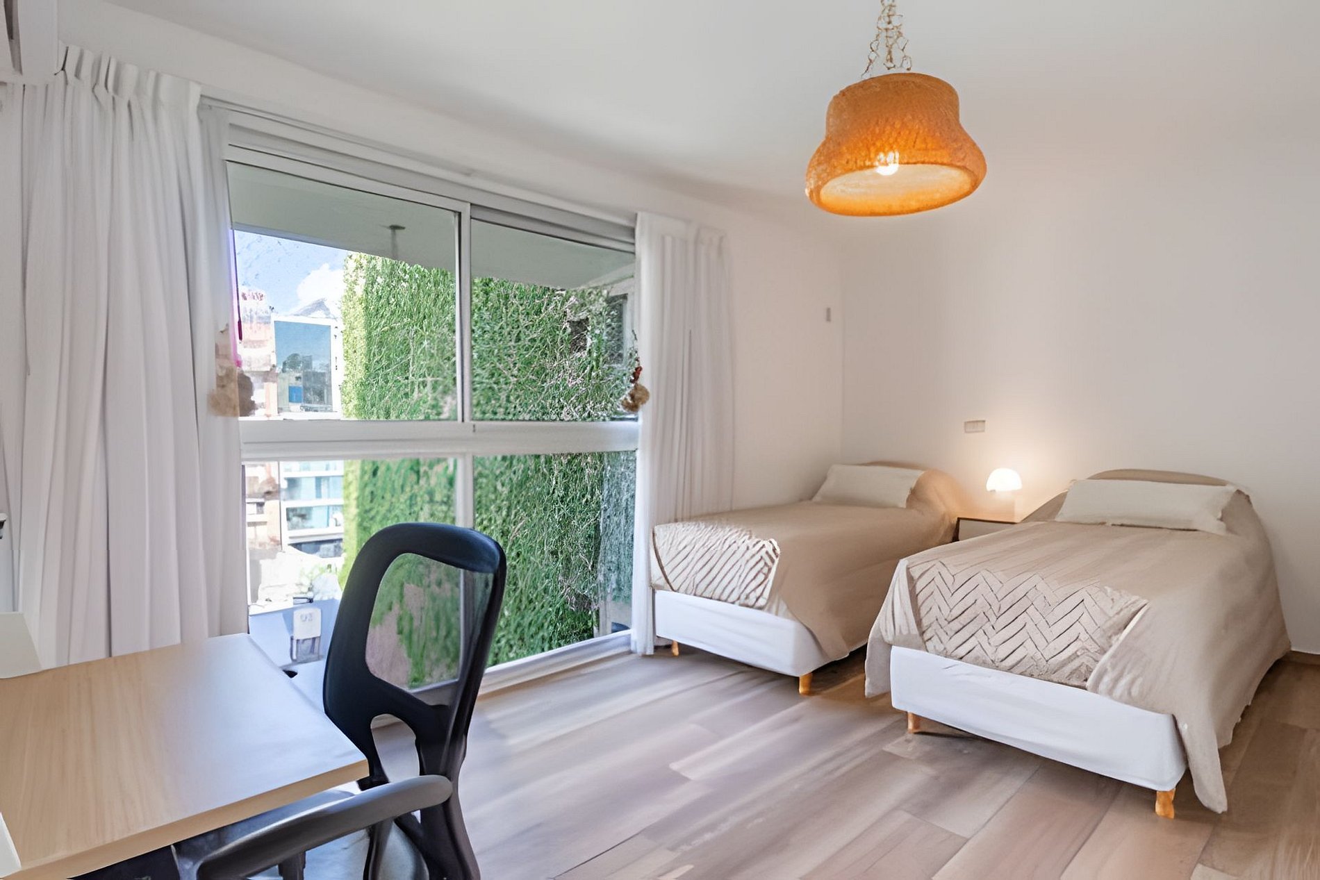 Beautiful brand new two-story 2BR apartment in the heart of Palermo. It is fully equipped to make you feel at home in the best neighborhood of the city. The building features a pool. There's also a private grill and washing machine available inside the apartment. It is located a few meters away from the best restaurants of Palermo Hollywood, plazas, boutiques, cafes, and the city's main attractions! Towels and amenities such as soap, shampoo, conditioner, etc. are included. The property has everything you need for an excellent stay: living room with fully equipped kitchen, safebox, air conditioning on both floors, a queen-size bed, washing machine, and a private barbecue within the apartment. In case you want to use the grill, an additional cleaning fee of US$7 will apply. The pool is open from November to March. High floor, black out curtains, Wifi, and Smart TVs. The sofa can be converted into a single bed. The CHECK-IN is autonomous (not in person), the keys are collected from a MasterLock that is a few blocks away from the apartment. **In order to check in, it is necessary to present an identification, such as Passport or ID to complete the guest registration and validate the identity of the person who has booked.**