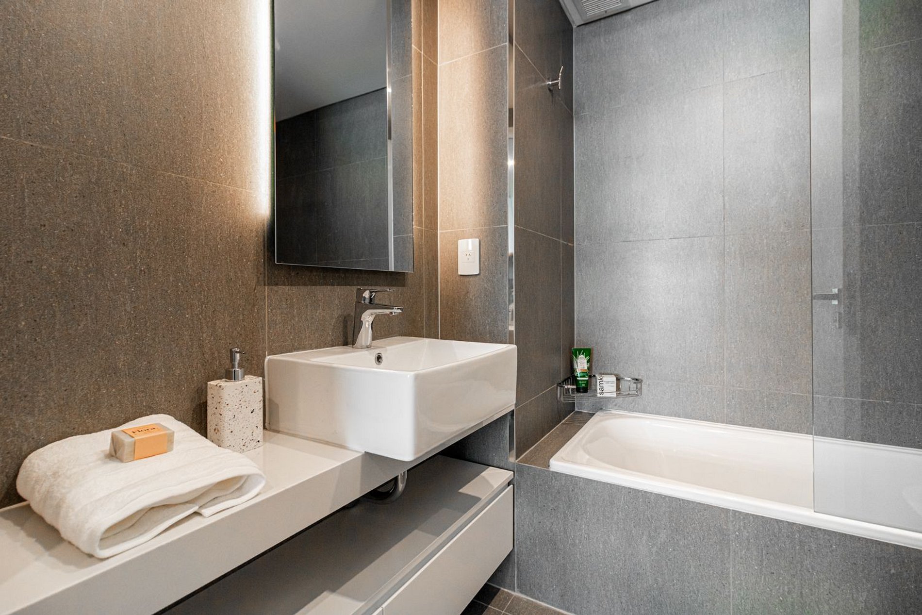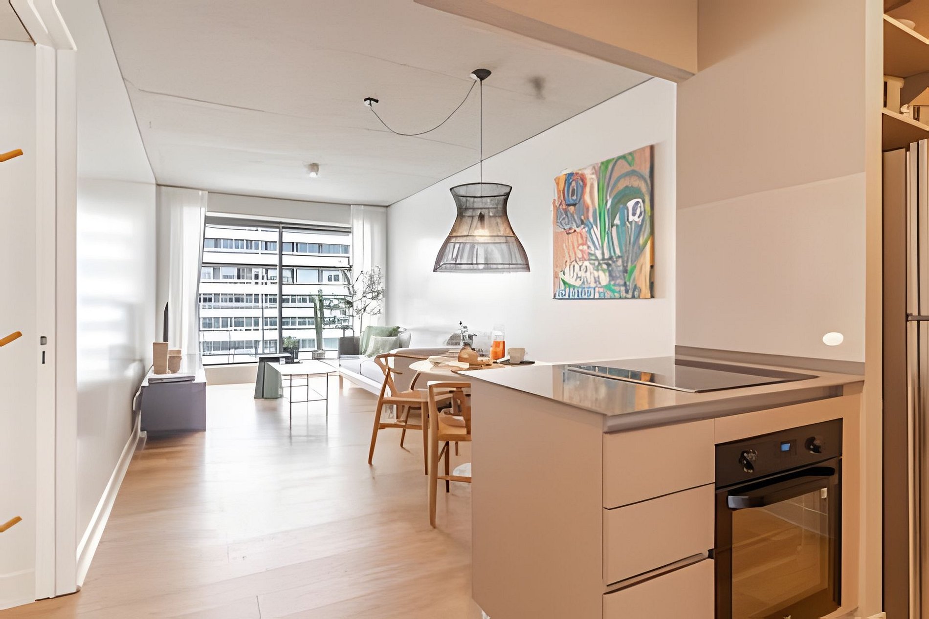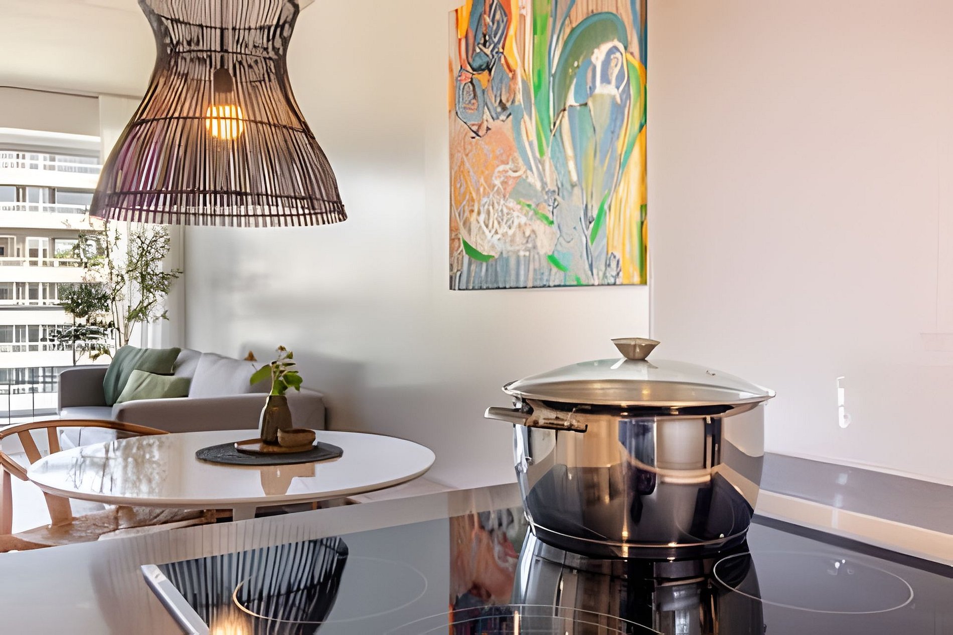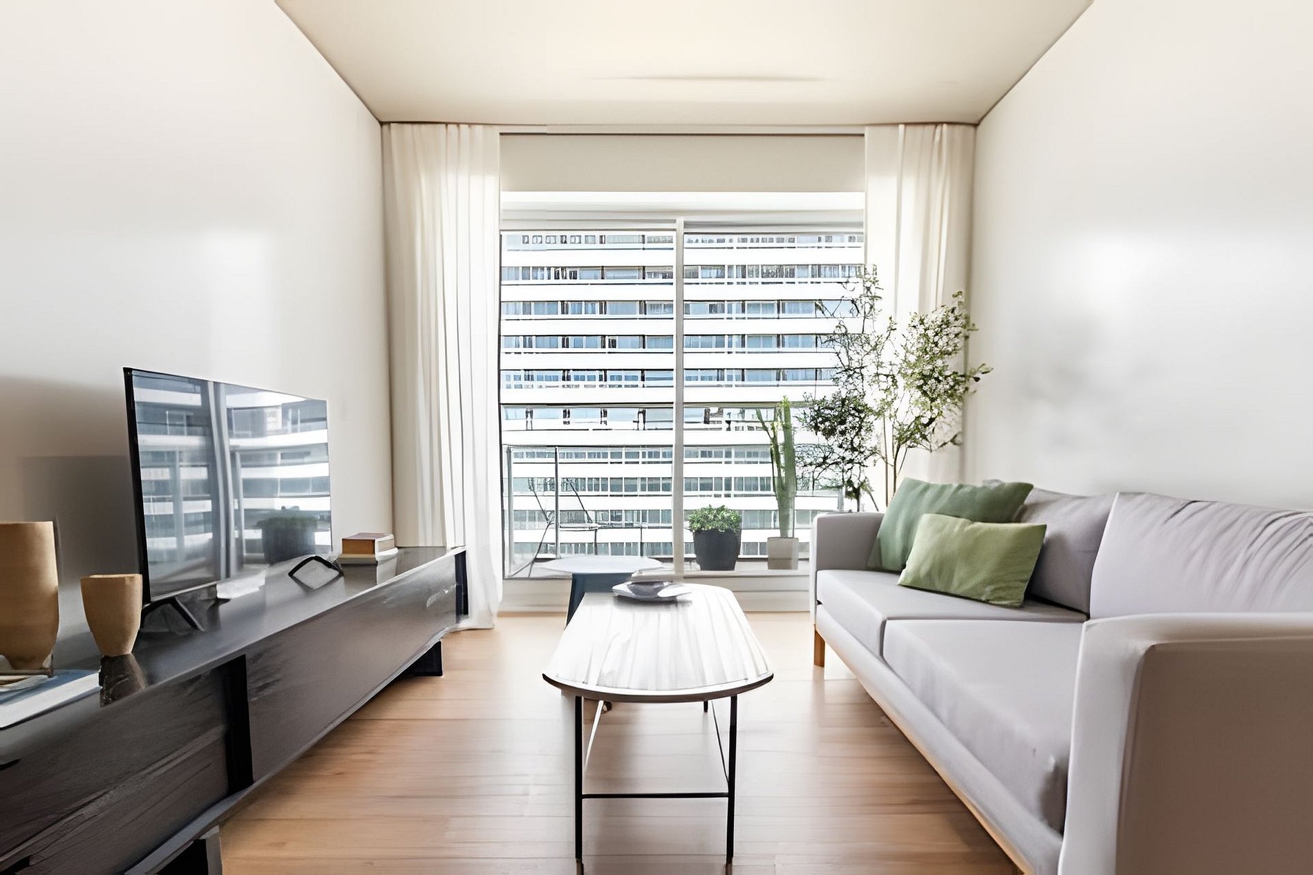 Cuenta con todo lo necesario para una excelente estadía: living comedor con cocina completamente equipada, vajilla completa, cafetera Nespresso, aire acondicionado en ambos ambientes, balcón soleado con vistas a la piscina, WiFi,y Smart TVs,. El apartamento tiene 2 baños: toilette + un baño completo. La habitación es muy amplia. Está provista de una cama queen-size (160 cm) con ropa de cama blanca de algodón de primera calidad y dispone de cortinas roller black out con automatización a control remoto, con cierre a la perfección para asegurar un descanso en total oscuridad.