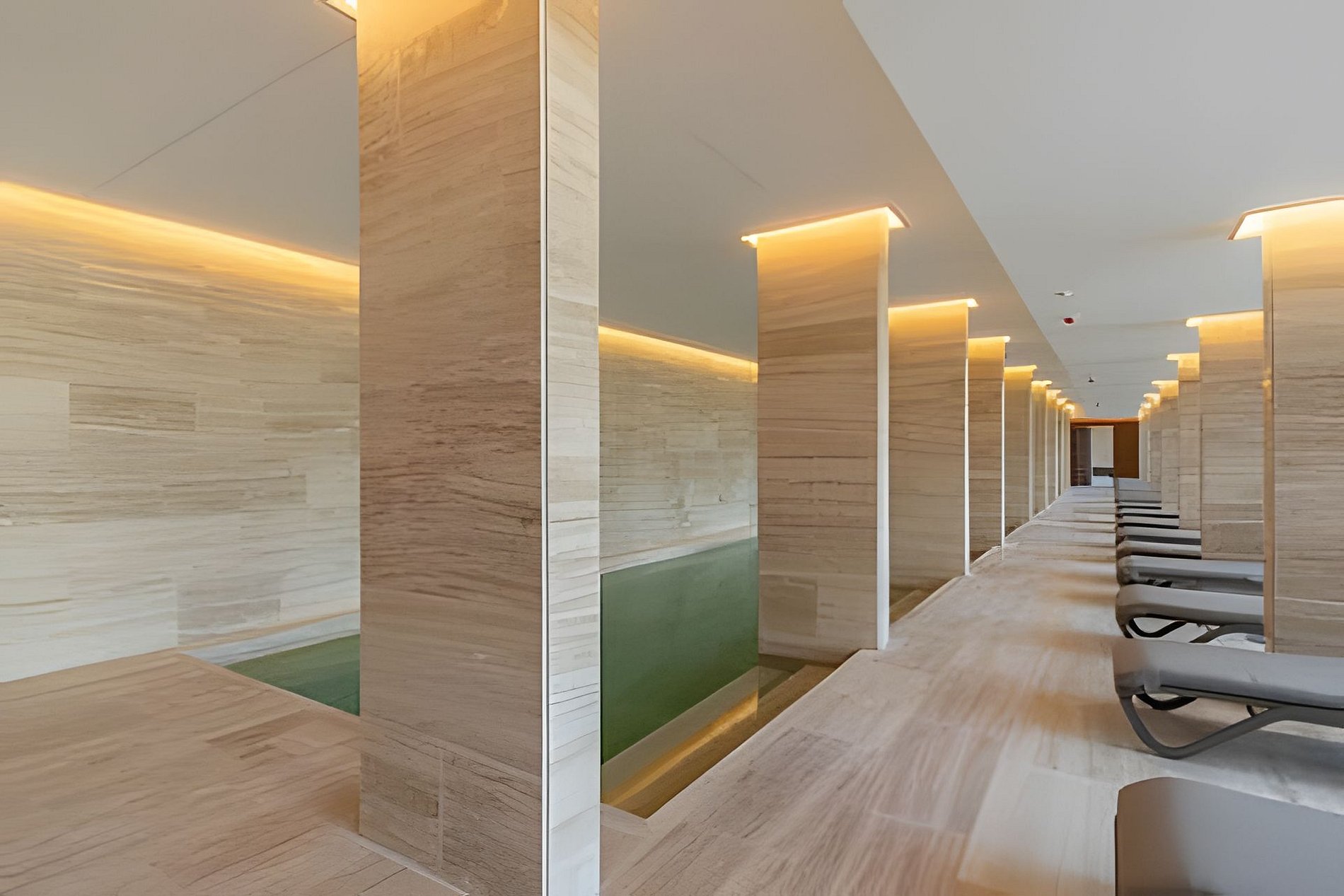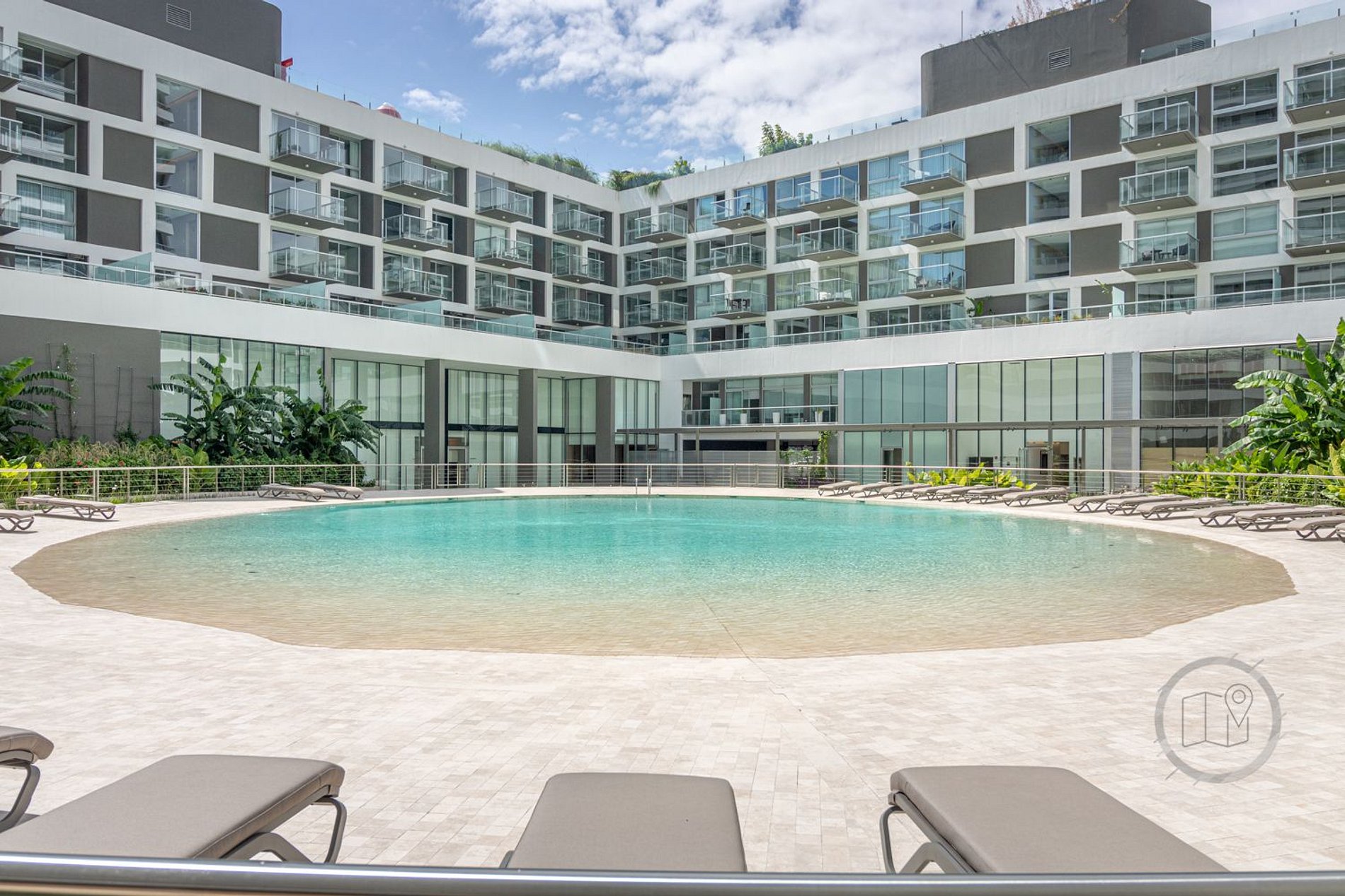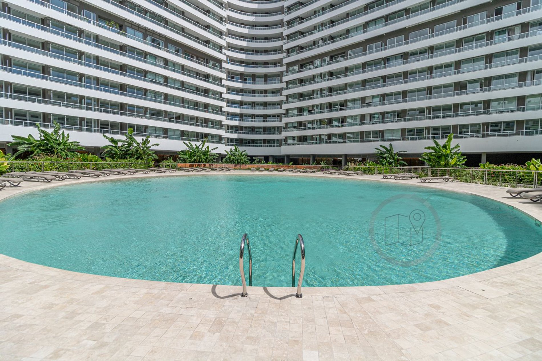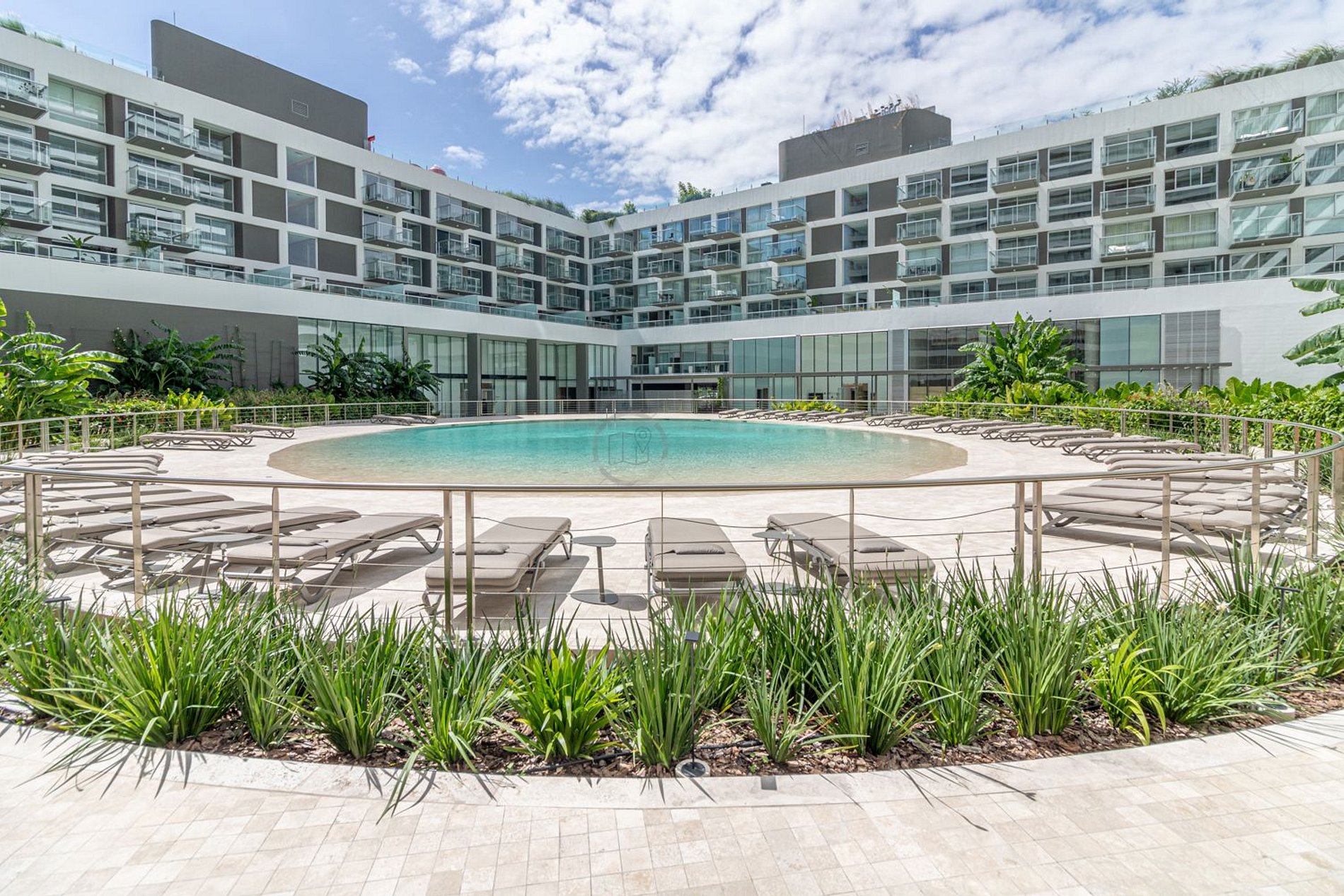 El edificio ofrece una piscina circular externa, otra piscina interior de 25 metros de largo para nadar y un hidromasaje escandinavo en el sector de spa. Además, cuenta con sauna, servicio de masajes, jacuzzi y salas de relajación. El complejo dispone de un gimnasio con equipamiento de primera línea, sala de pilates, sala de yoga, y un circuito aeróbico parquizado de 360º. Salon de belleza dentro del complejo, exclusivo para huespedes. Se requiere reserva.