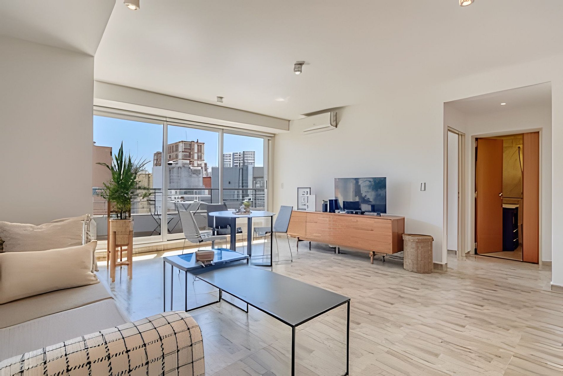 El apartamento cuenta con cafetera Nespresso, aire acondicionado en los dos ambientes, cama king size y persiana black out en el dormitorio. El edificio esta provisto de un area de laundry con maquina lavadora y secadora (uso compartido) para la cual deben comprarse tokens en kioscos cercanos.