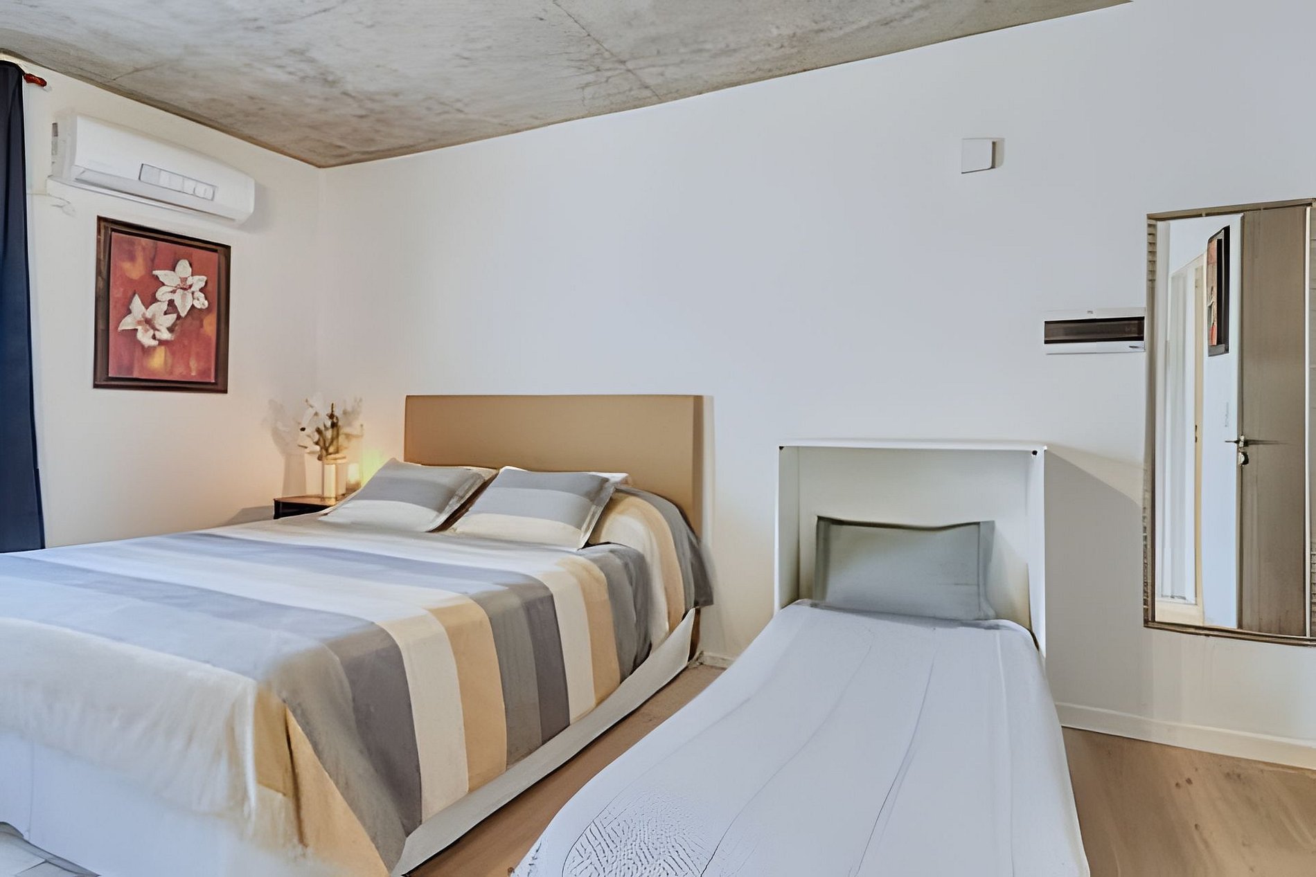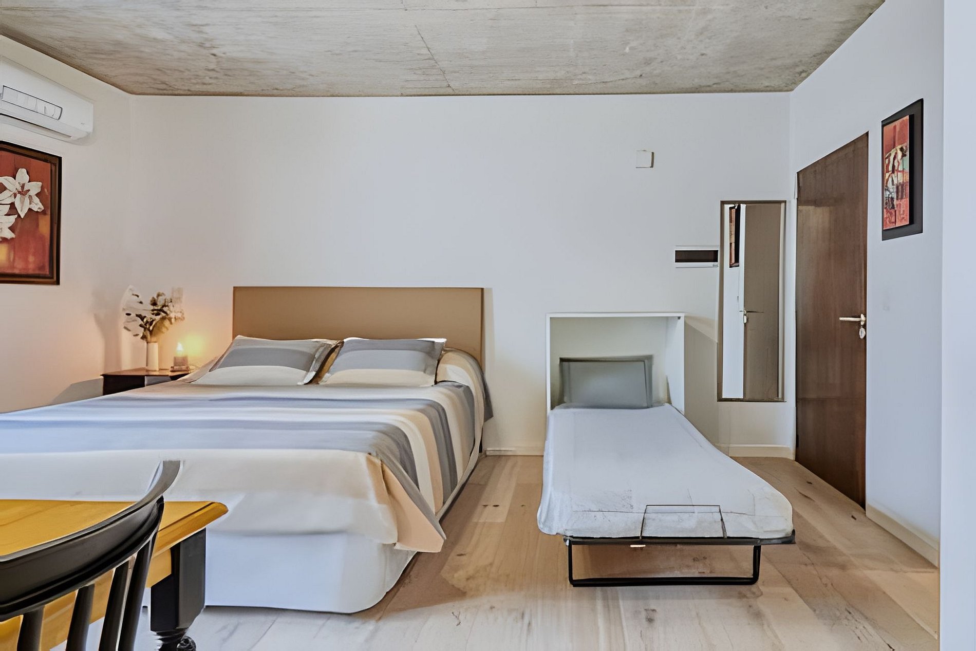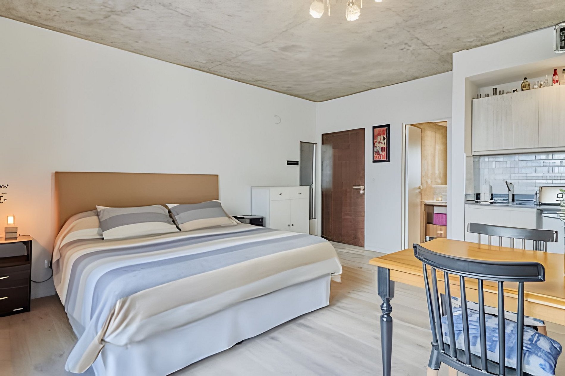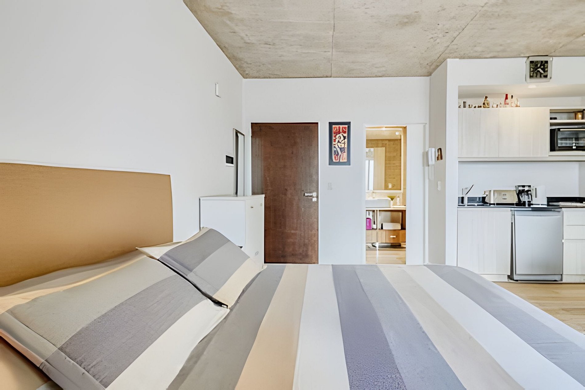 Cuenta con todo lo necesario para una excelente estadía: living comedor con cocina muy equipada, aire acondicionado, cama king size, wifi y Smart TV. La cama extra solo se aconseja para niños. El CHECK-IN es autónomo (no presencial) . Las llaves se recogen por un MasterLock ubicado a algunas cuadras del apartamento.