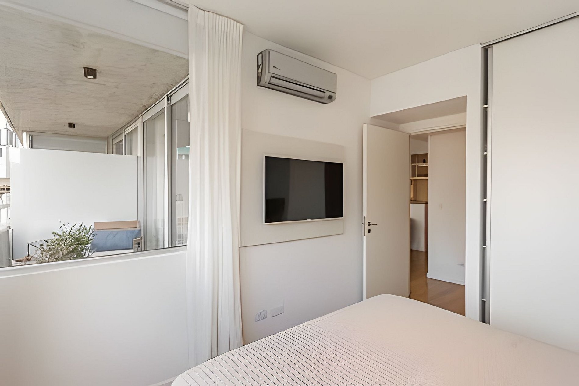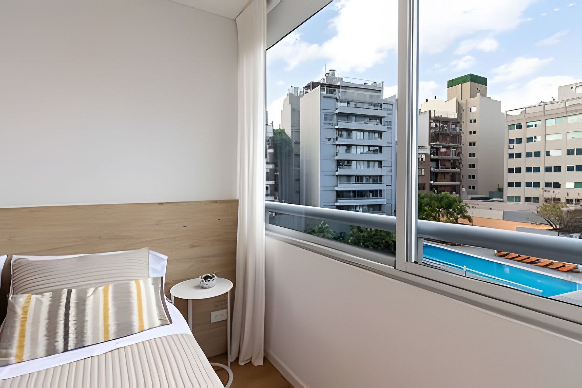 Cuenta con todo lo necesario para una excelente estadía: living comedor con cocina completamente equipada, vajilla completa, cafetera Nespresso, aire acondicionado en ambos ambientes, balcón soleado con vistas a la piscina, WiFi, y Smart TVs en el dormitorio y living. La habitación es muy luminosa. Está provista de una cama queen-size (160 cm) con ropa de cama blanca de algodón de primera calidad y dispone de cortinas roller black out.