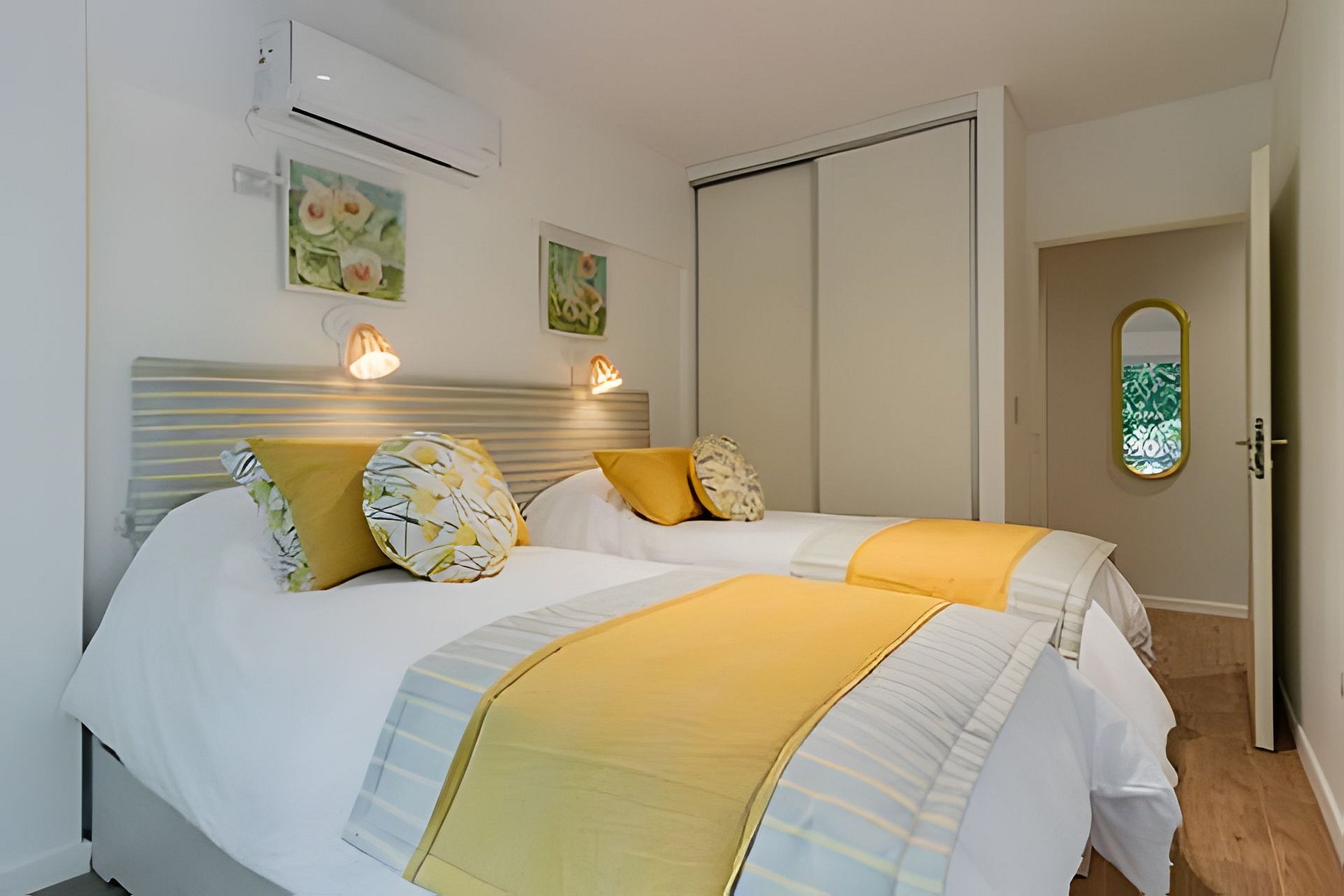El dormitorio principal tiene su propio baño en suite y una cama queen size, mientras que el segundo dormitorio tiene dos camas individuales. Ambos cuentan con aire acondicionado y salida al balcón. Estaremos disponibles para lo que necesites durante tu estadia. Se incluyen toallas, sábanas y amenities (tales como jabón, shampoo y acondicionador). Por favor infórmenos la cantidad de camas requeridas para tu estadía antes del check-in.