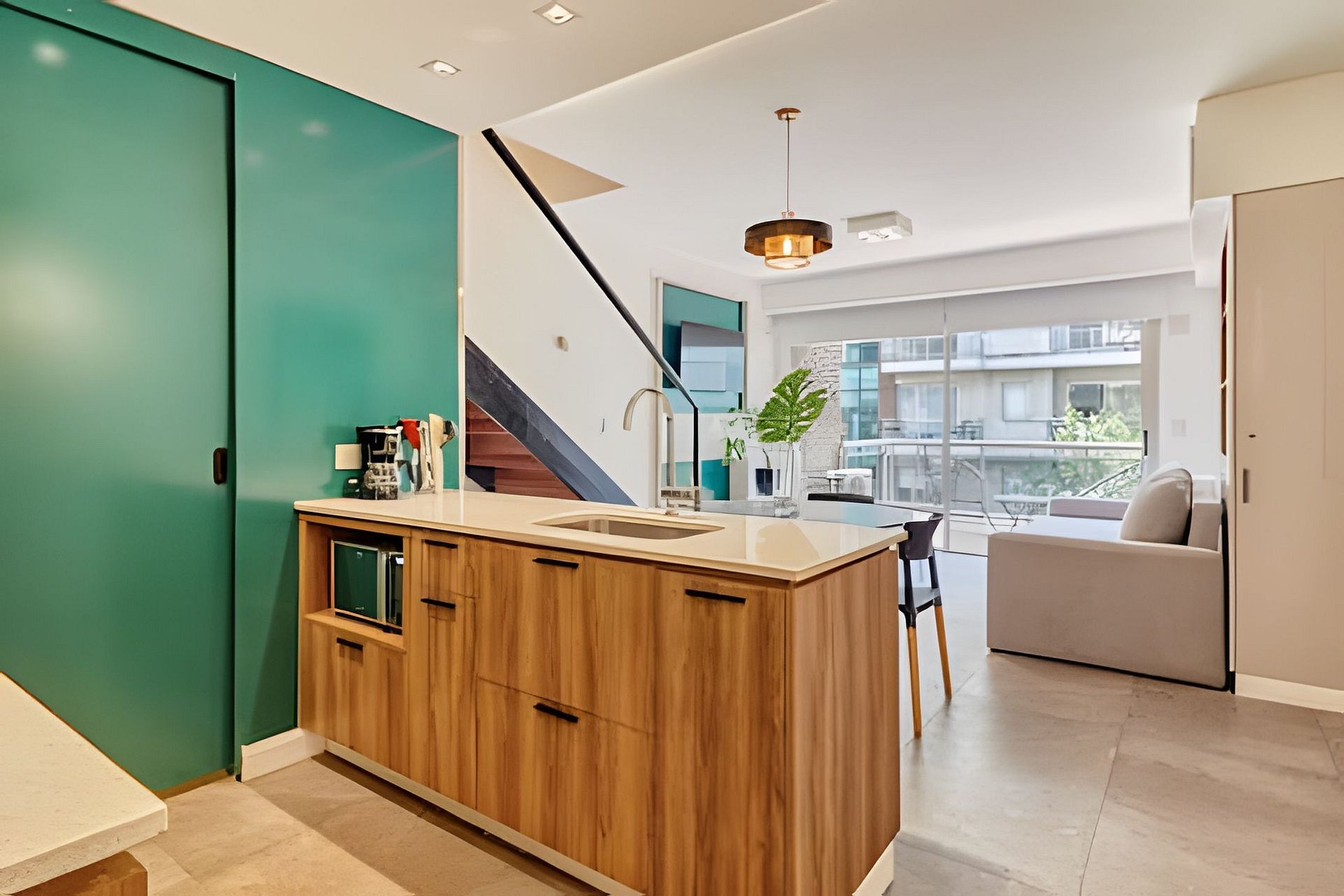 Cuenta con todo lo necesario para una excelente estadía: living comedor con cocina completamente equipada, aire acondicionado en ambos pisos, cama queen size, máquina para lavar ropa y parrilla privada dentro del apartamento. En caso de utilizar la parrilla se cobrará un costo de limpieza de US$7. Piso alto, cortinas black out, Wifi y Smart TVs. Opción de convertir el sofá en dos camas individuales.