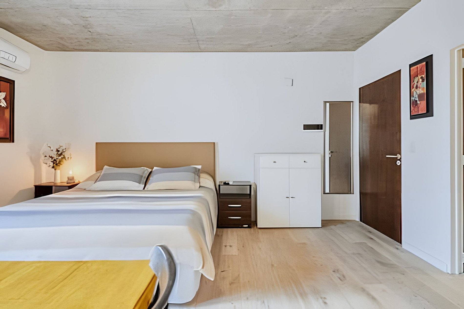 Cuenta con todo lo necesario para una excelente estadía: living comedor con cocina muy equipada, aire acondicionado, cama king size, wifi y Smart TV. La cama extra solo se aconseja para niños. El CHECK-IN es autónomo (no presencial) . Las llaves se recogen por un MasterLock ubicado a algunas cuadras del apartamento.