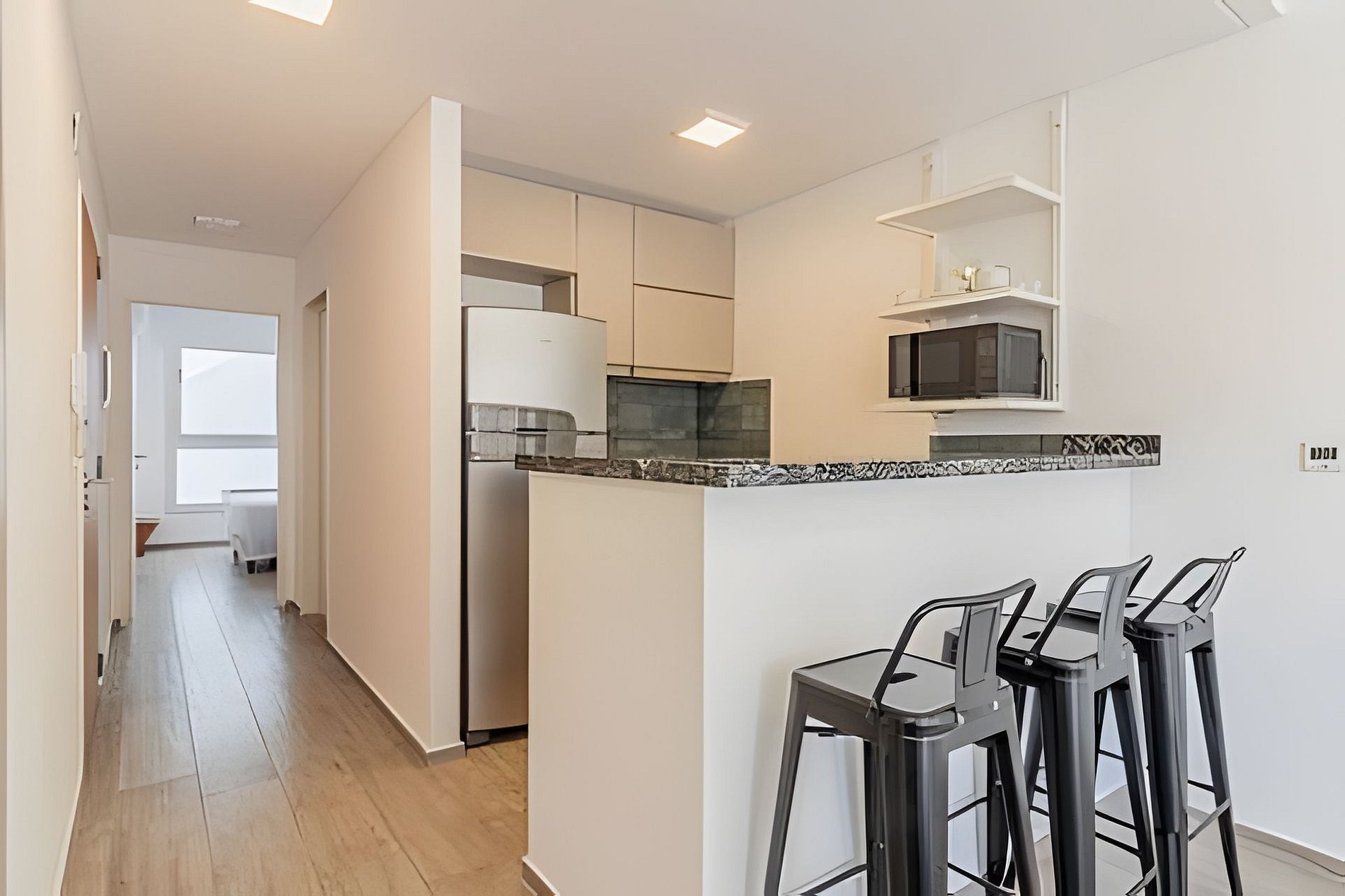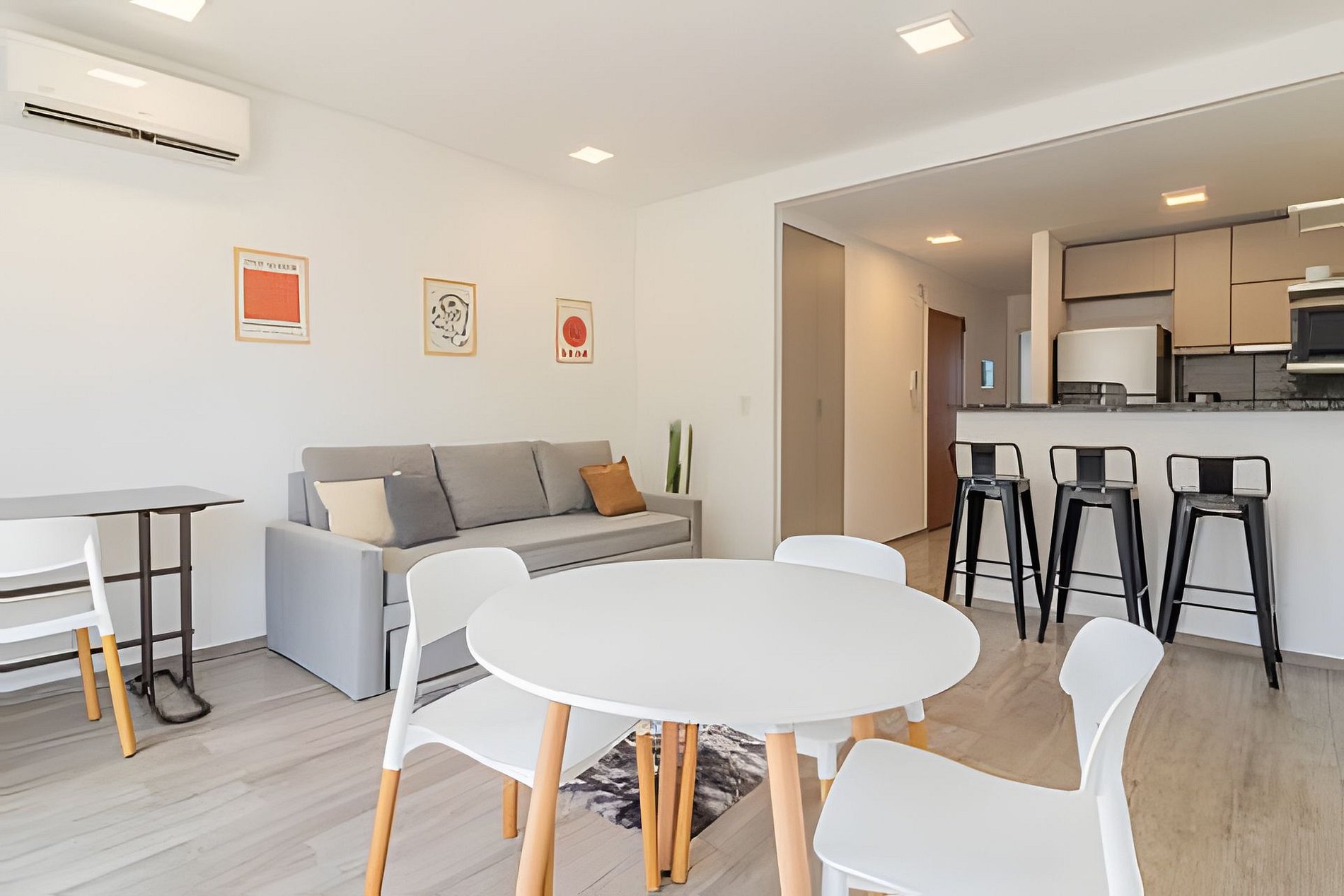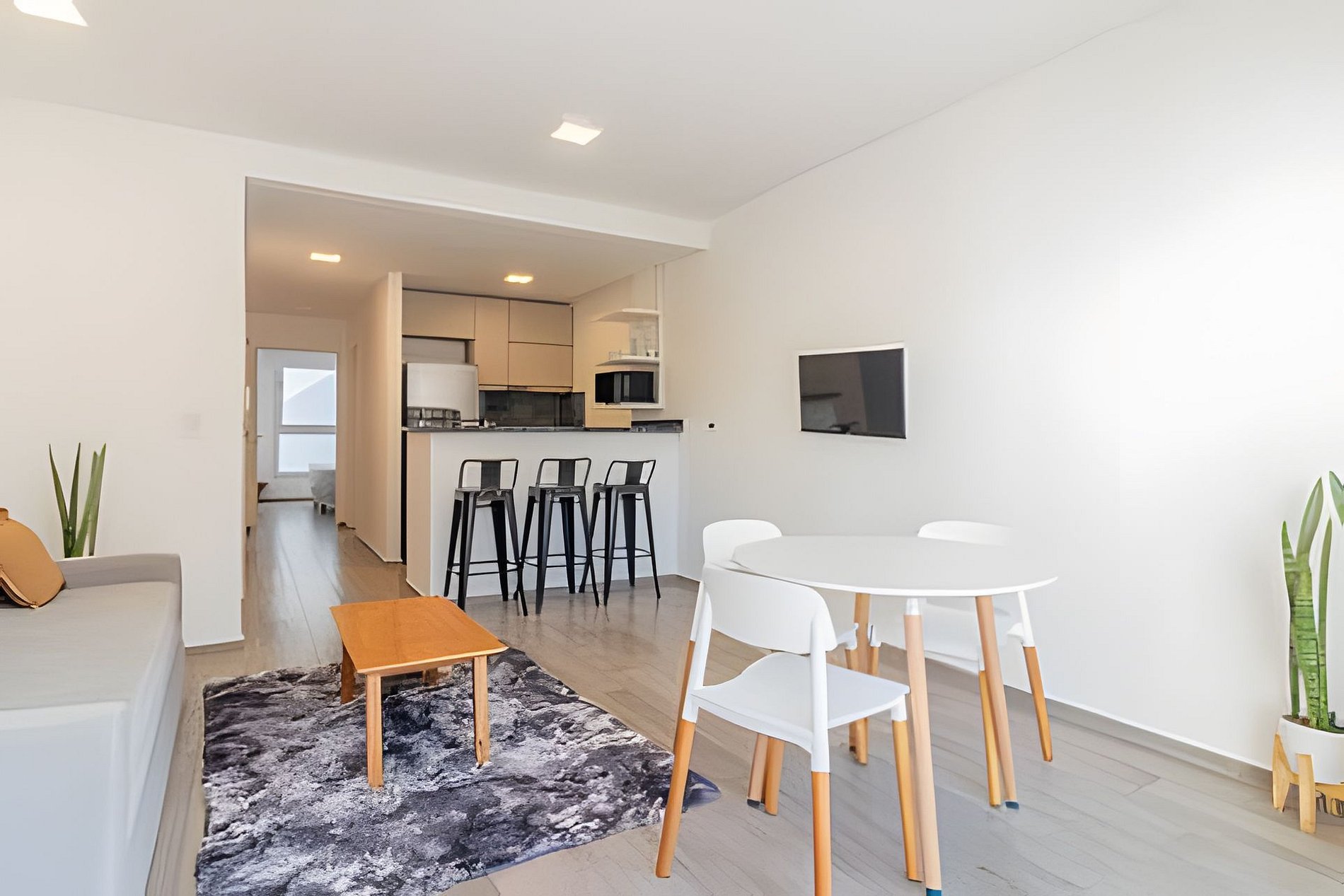 Cuenta con todo lo necesario para una excelente estadía: cocina completamente equipada y mesa circular, aire acondicionado en ambos ambientes, cama Queen Size. Cortinas Black Out, Wifi y un Smart TV. Opción de convertir el sofá en dos camas individuales, ideal para niños o adolescentes debido a sus dimensiones.